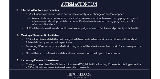 💉 The press conference was advertised as announcing the cause of autism. And as leaks predicted, President Trump and the other top health officials noted a link between Tylenol (acetaminophen) and autism, and cautioned pregnant women to use the painkiller only sparingly and as a last resort.