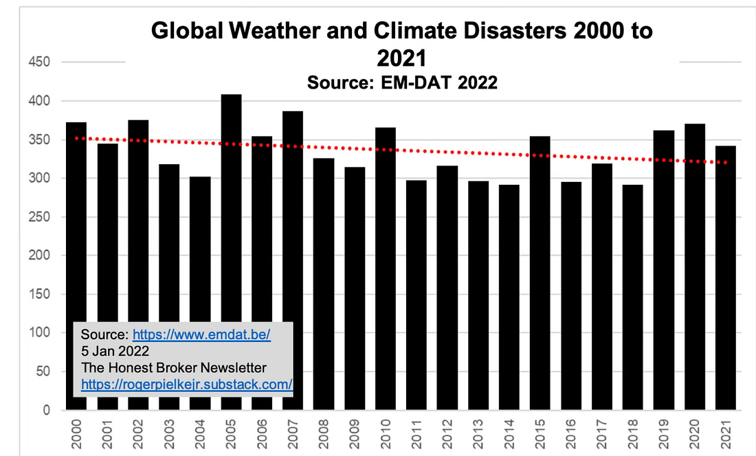 Moreover, there is strong evidence of deliberate deception. I recently documented how a top sea level rise scientist, Robert Kopp of Rutgers, engages in deception. The leading global organization that tracks disasters abruptly and inappropriately changed its methodology after climate expert Roger Pielke, Jr. showed that they had declined from 2000 to 2021.