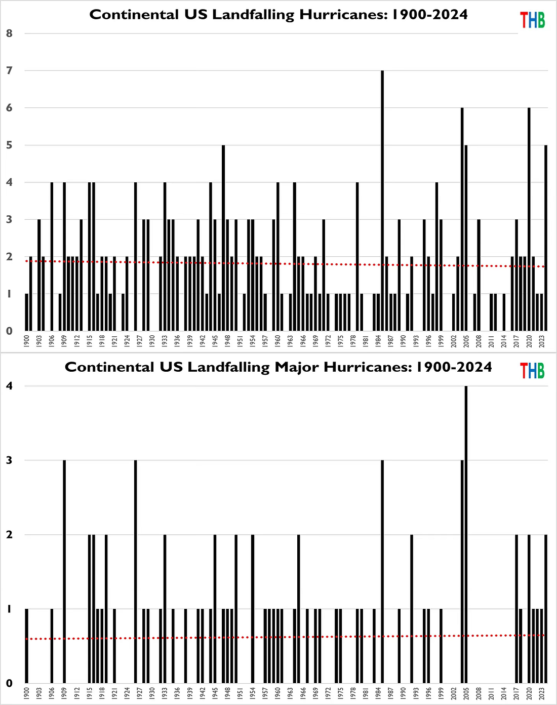 But those claims are all nonsense. Climate change is real, but there was never any scientific evidence that it posed a threat to civilization and humankind. The area of Earth on fire has declined for decades, and what determines whether there are high-intensity fires is forest management and other forms of fire protection. There is no increase in hurricane frequency or intensity, and flood deaths and damages are determined by infrastructure and emergency preparedness. Nearly 90 percent of atoll islands have either increased in size or stayed the same in recent decades. Arctic ice did not decline from 2000 to 2024 and likely will not decline in the coming years. Coral on the Great Barrier Reef is at a 36-year high. Crop yields continue to climb, even with higher temperatures, aided in part by greater carbon dioxide. And heat waves were far worse in the 1930s, before significant human emissions, cold deaths outnumber heat deaths, and heat deaths are easily avoidable with access to air conditioning. The claims that billions will die and that climate change poses an existential risk are thus misinformation and, often, given that many scientists know they are lying, intentional disinformation. The best available evidence suggests nobody will die from climate change.