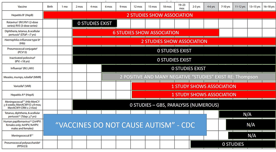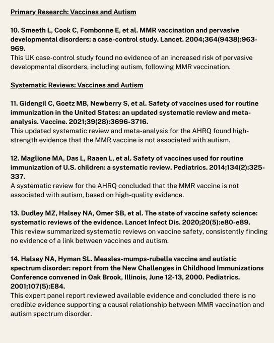 Frieden’s list of 14 studies is not a triumph of evidence. It’s a lesson in circular citation, overreach, and misinterpretation. The public deserves more than slogan science. Autism is not a singular entity, and vaccines are not a single exposure. Until we study, using a mix of retrospective and prospective studies the total schedule effects, susceptible subgroups, gene-environment interactions, prediction accuracy of models that remove children from the schedule or specific vaccines based on risk stratification and cumulative toxicant load—using properly powered, prospective, randomized designs—we cannot claim to have tested, let alone rejected, the hypothesis that vaccines contribute to autism risk in some children.