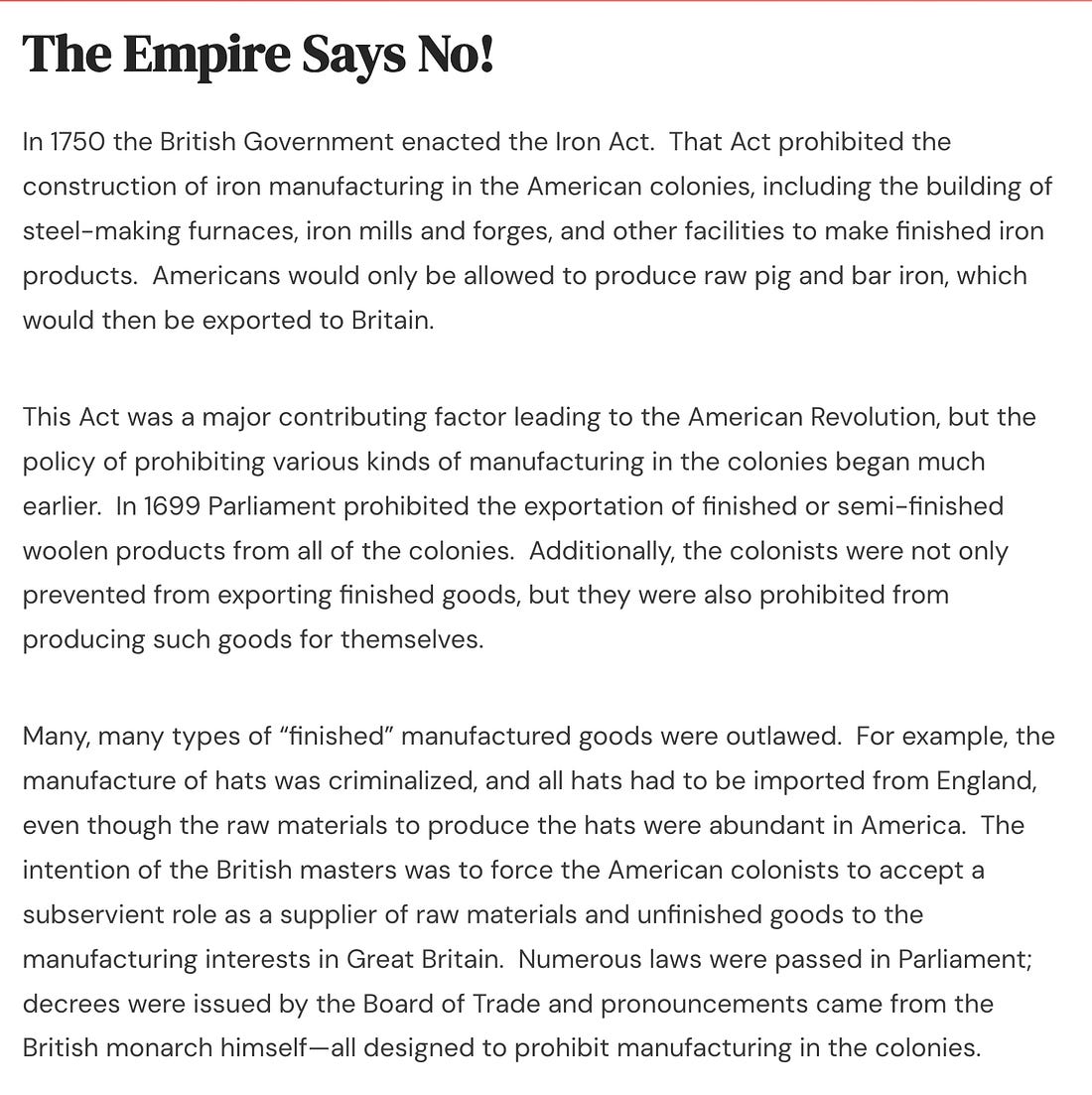 In an essay on the Promethean website, Robert Ingraham fleshes out how the British Imperium acted to stunt and enslave their colonists.
