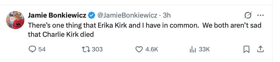 Yeah, well, what about a bullet in the neck? Not as bad? And if the answer is, of course, it’s as bad, why did so many of them feel like it was allowed to say the most vile things about Charlie and his widow, Erika? The “good words” and “good speech” people could not help themselves, and no one said a thing on that side. Not a thing.