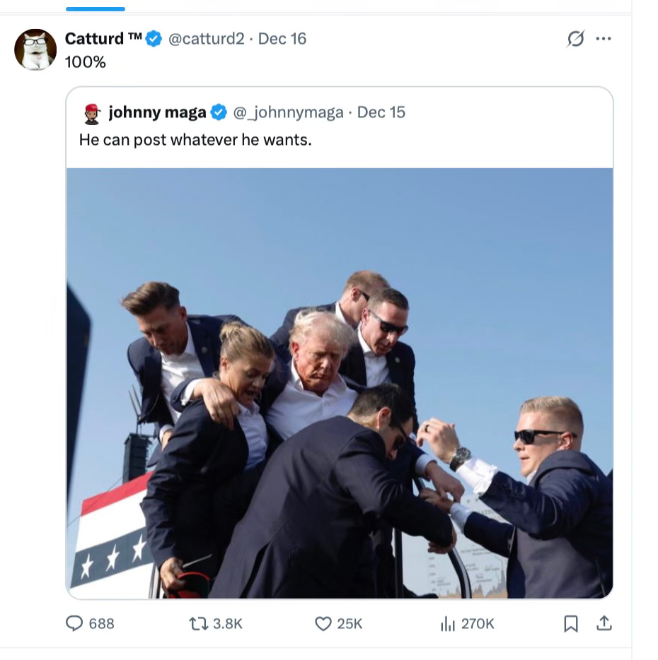Two extreme ends of the spectrum – a guy who says something bad versus a guy who uses a gun to shut him up. And this is why Trump supporters remain loyal to him.