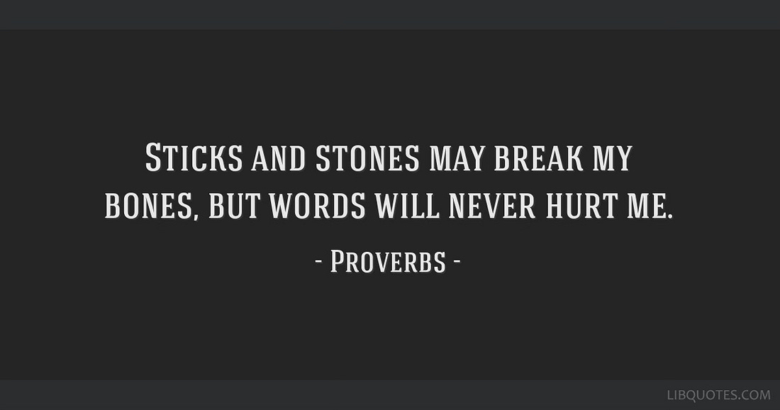 I don’t think the Left understands the difference between sticks and stones and words. If we can’t even survive words, how can we survive anything else?