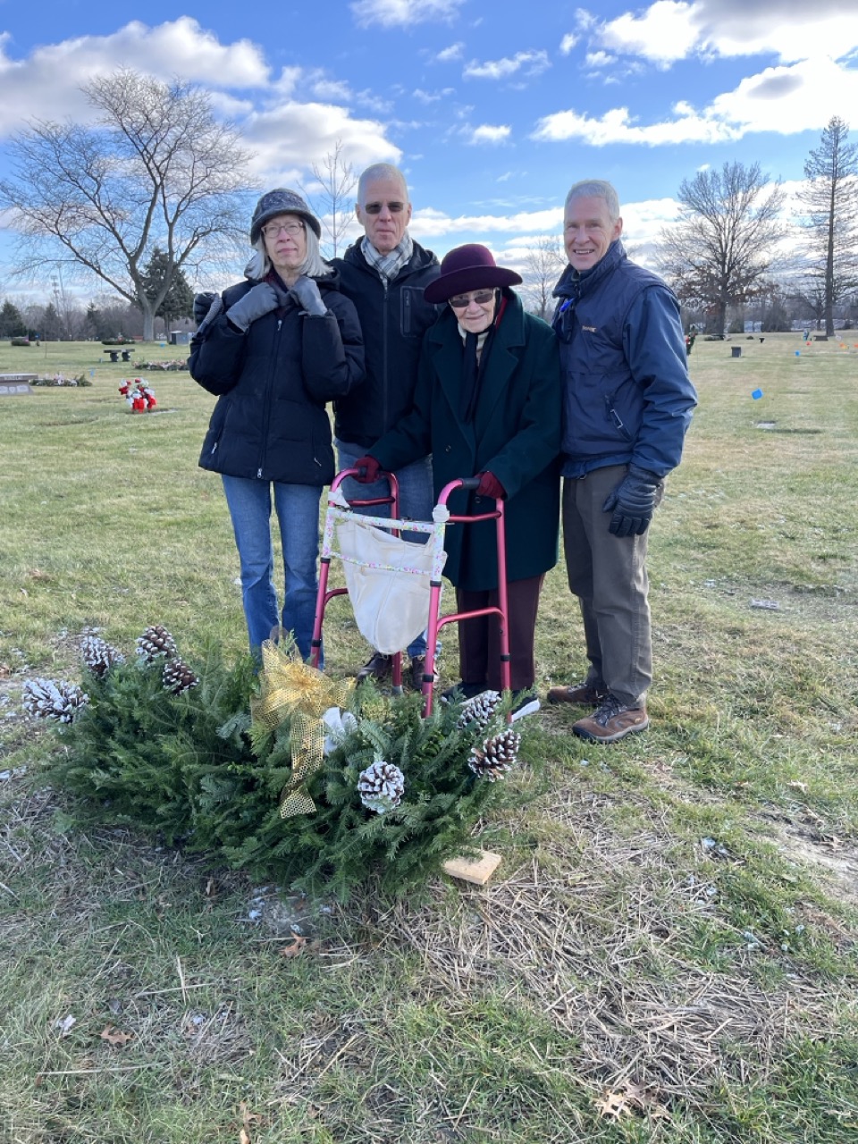 Sister Edie, me, my mom and brother Ernie at my father’s grave.